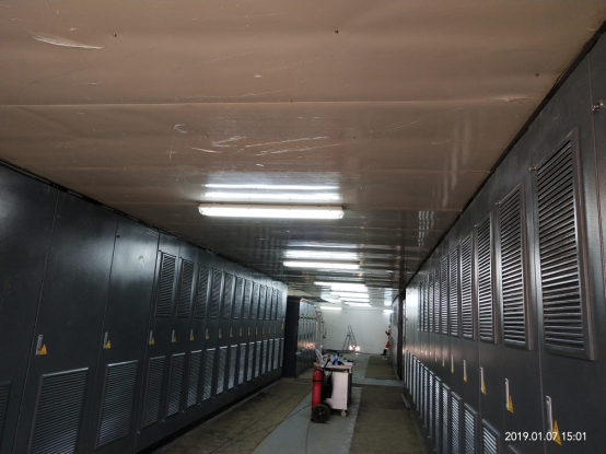 安裝形式:3臺變頻器采用室內吊頂隔層集中熱風通過引風道至室外水冷柜;