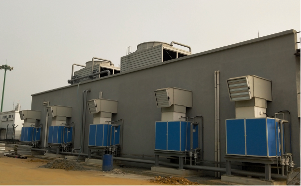冷卻水:采用雙橫流冷卻塔自循環供水至10套空水冷系統;